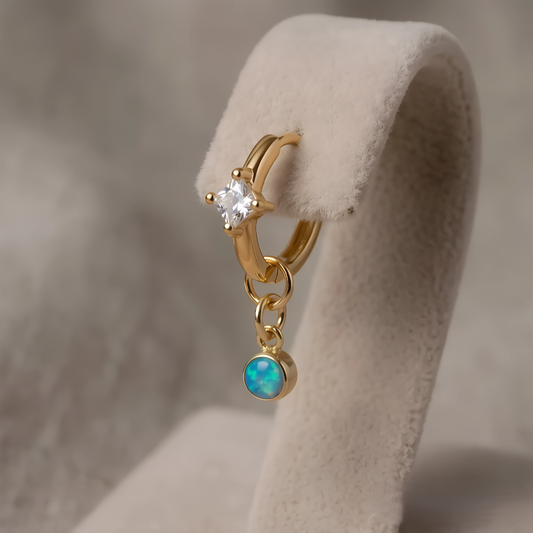 14K Gullbelagt Sølv Øreringer med Blå Opal & Hvit Stein – Hoop Øredobber (Par)