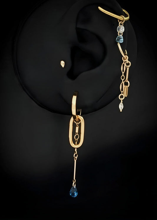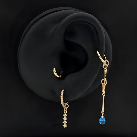 Øredobbsett (Ear Stack) – 4 Øredobber i Gull med Blå Stein & Opal