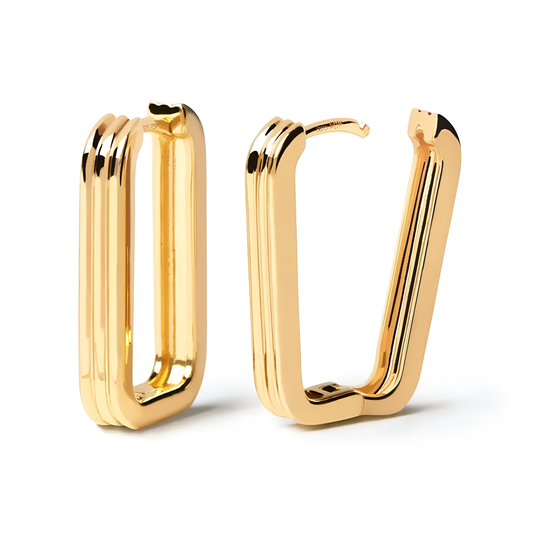 RHEA Firkantet Gullbelagt Hoop Øredobber