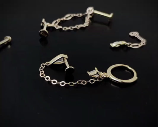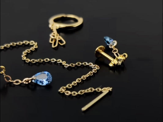 Sett med 3 Kjede Øredobber – Flatback Piercing i Gull - Helix piercingsmykker