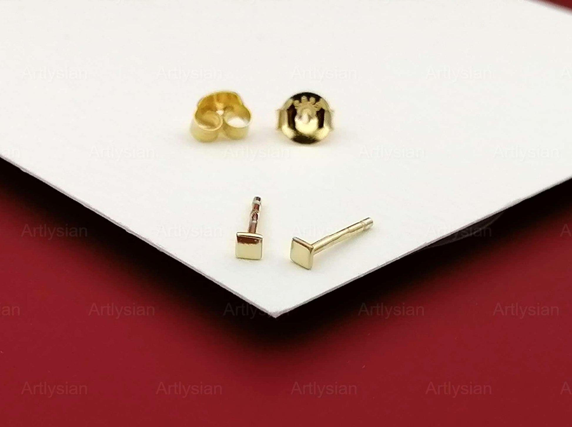 Vi introduserer vår "Tiny Stud Earrings"-kolleksjon, der diskré eleganse møter håndverksmessig håndverk. Hev hverdagsstilen din med våre omhyggelig håndlagde 2,5 mm firkantede øredobber og bakstykker i sterlingsølv, tilgjengelig i både klassisk sterlingsølv og en strålende 18k gullbelagt finish.Disse miniatyrunderverkene er designet for den moderne minimalistiske, og utstråler tidløs sjarm og allsidighet. Du har valget mellom å anskaffe en enkelt øredobber for å pryde det ene øret eller et par av disse delikat utformede øredobber for å pryde begge ørene.