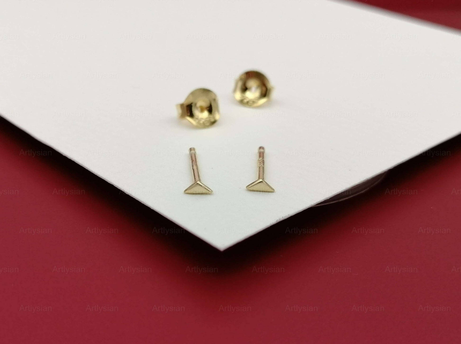 Vi introduserer våre bruskøredobber - perfekt for et minimalt, men elegant utseende. Disse lekre 2,5x4 mm trekantede øredobber og bakstykker er omhyggelig laget av høykvalitets sterling sølv og kommer i klassisk sølv eller en strålende 18k gullbelagt finish.