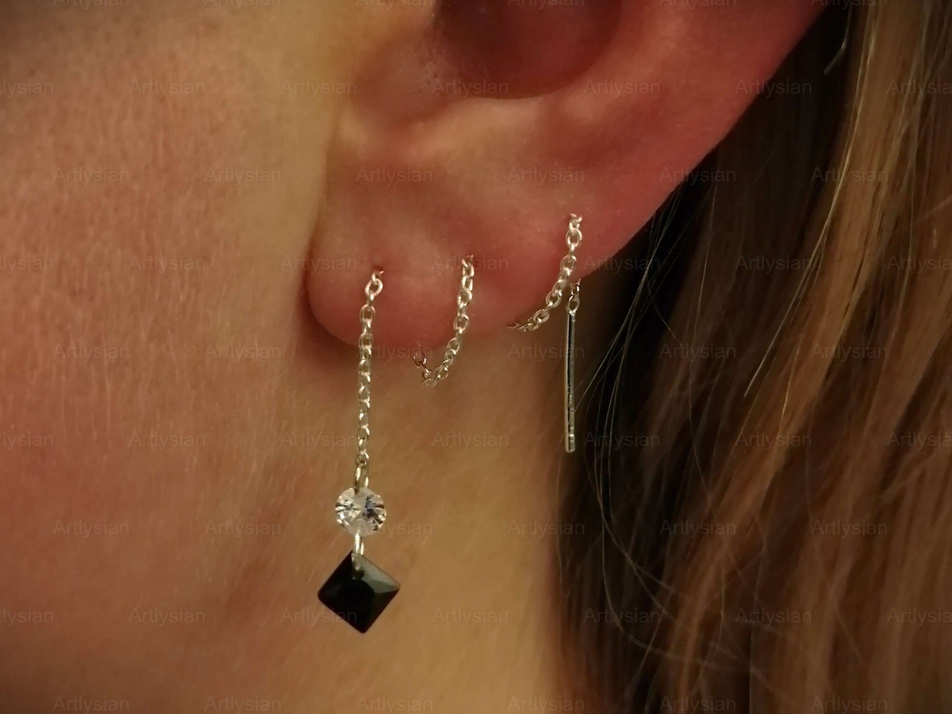 Disse utsøkte øreringene tilbyr tilpasningsmuligheter for å passe stilpreferansene dine. Velg mellom et utvalg av sølv- eller gullbelagte finisher, velg en enkelt øredobber (designet for ett øre) eller et par (for begge ører), og personliggjør utseendet ditt ytterligere ved å velge din foretrukne zirkontype (se det andre bildet for alternativer). Gjør en uttalelse med disse omhyggelig utformede øreringene, designet for å komplementere din unike stil.