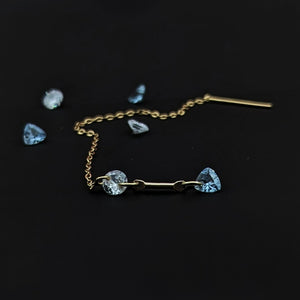 Flatback Øredobber i Gull – Dobbel Triangel med Kjede & Dråpe