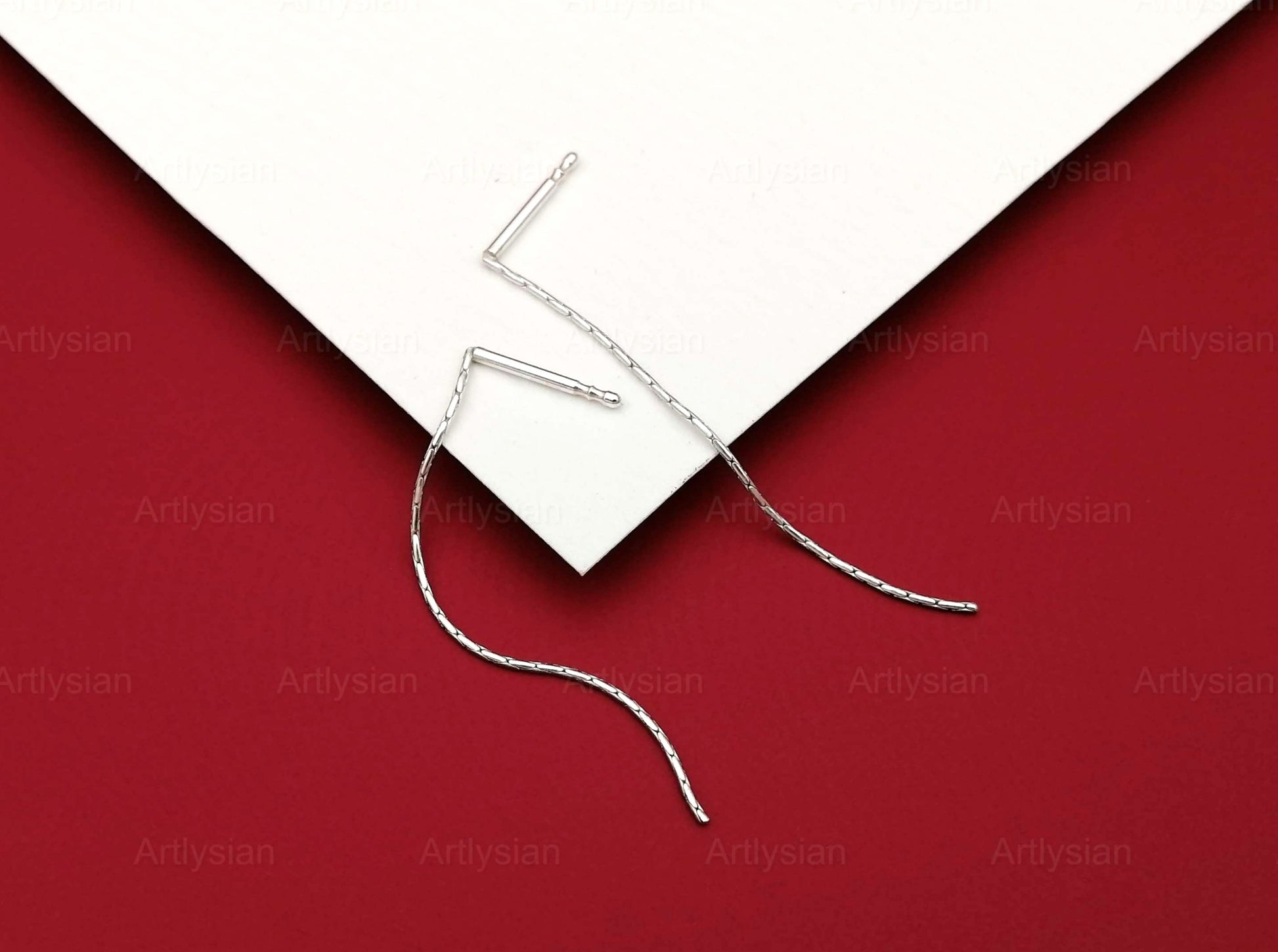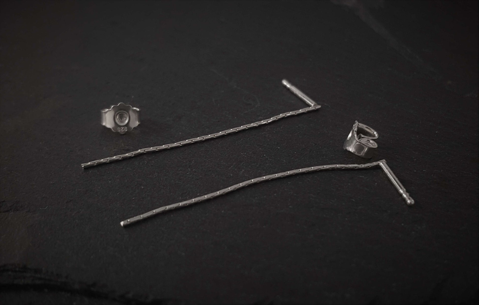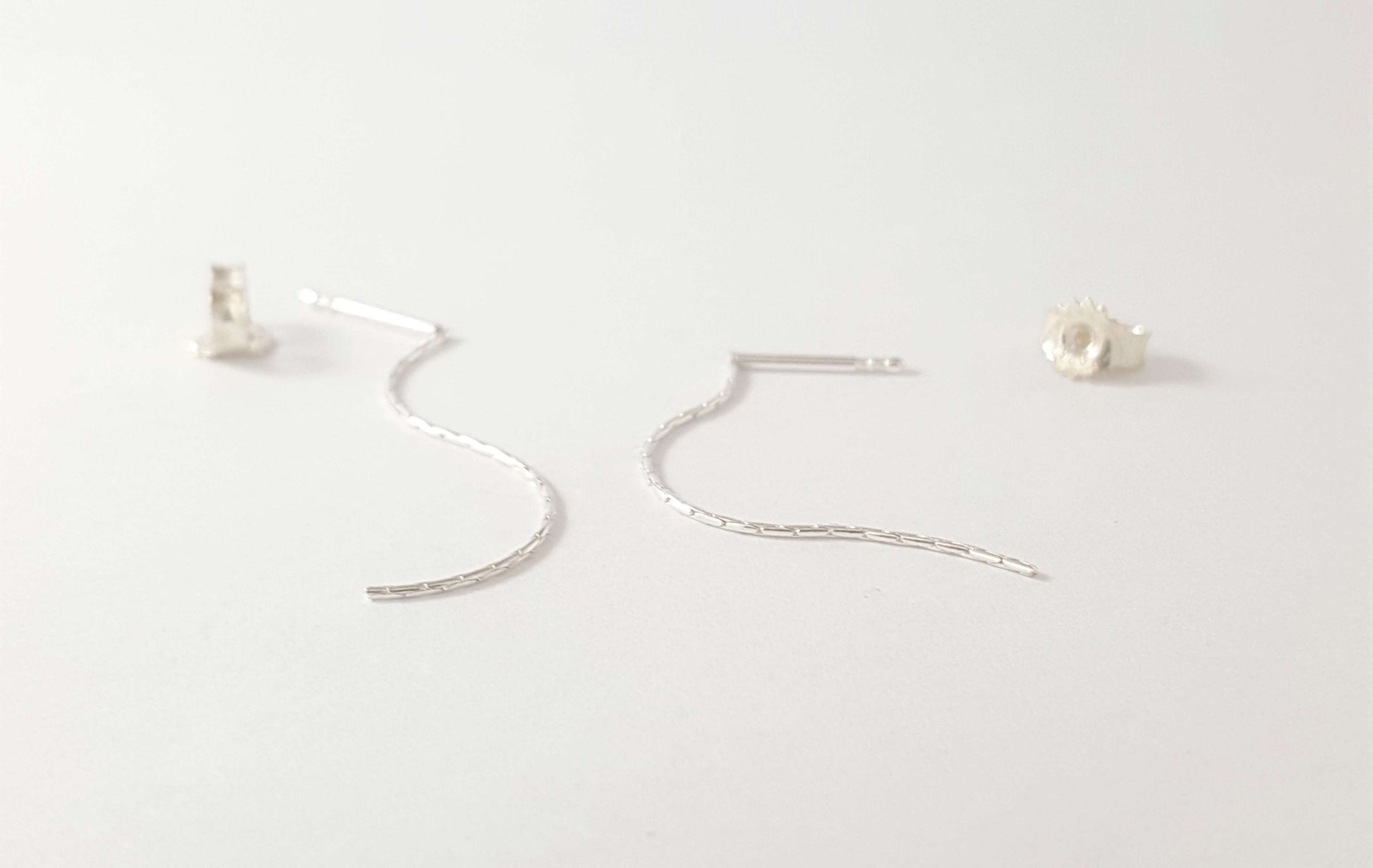 Møt våre minimalistiske kjede øredobber i sterling sølv: et subtilt, men fasjonabelt tillegg til smykkesamlingen din. Disse elegante stiftene er laget av strålende sterlingsølv og tilbyr et snev av raffinement som er egnet for daglig bruk. Med sitt minimalistiske kjededesign utstråler de diskret sjarm og er allsidige nok til å komplementere ethvert antrekk. Hev stilen din med disse grasiøse og lettbrukte øredobber