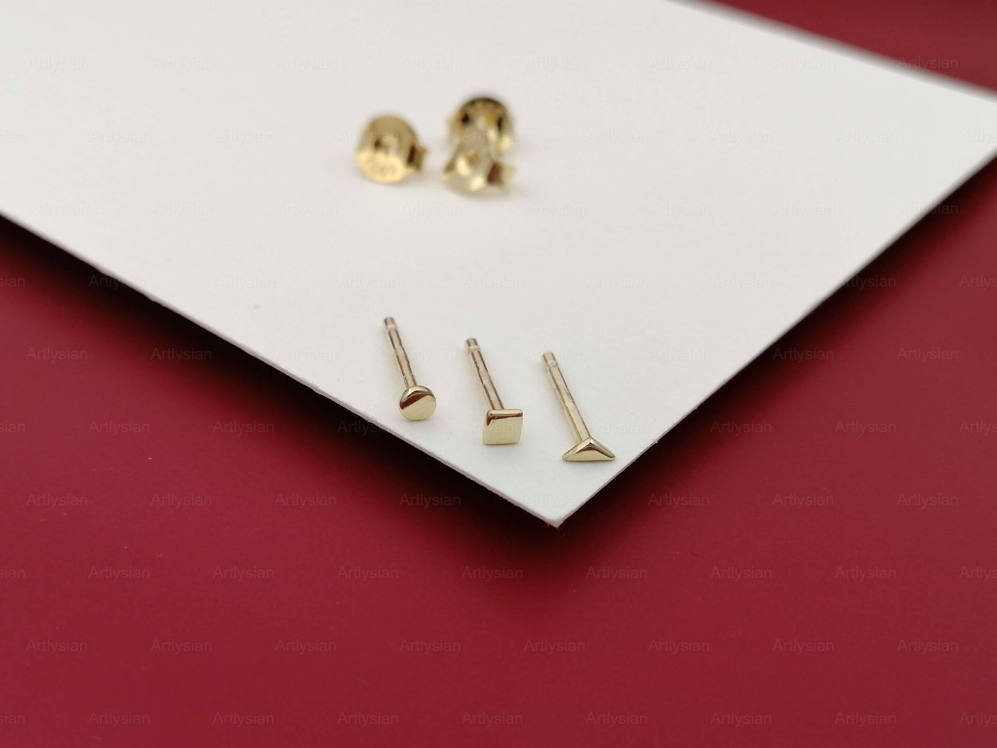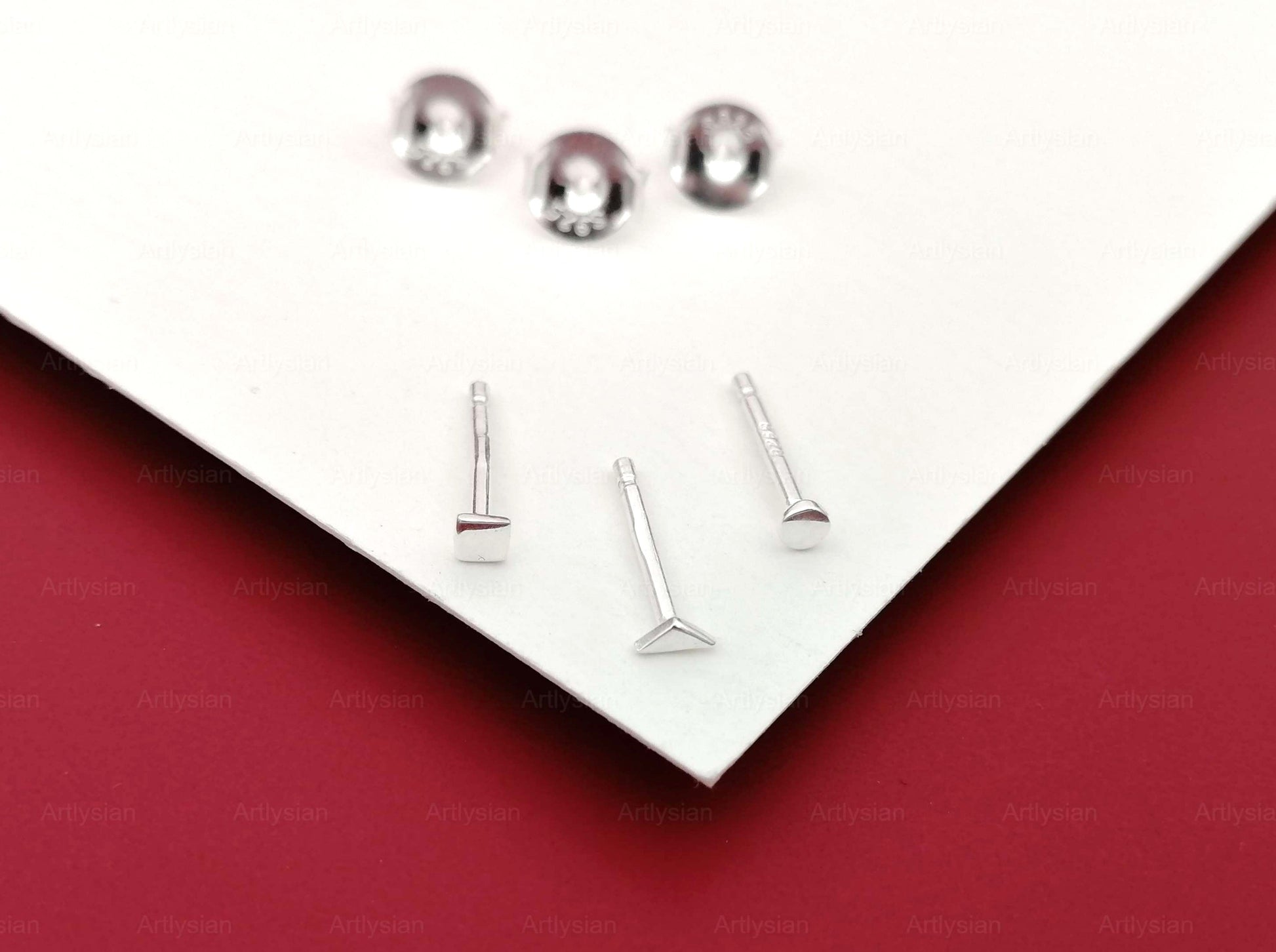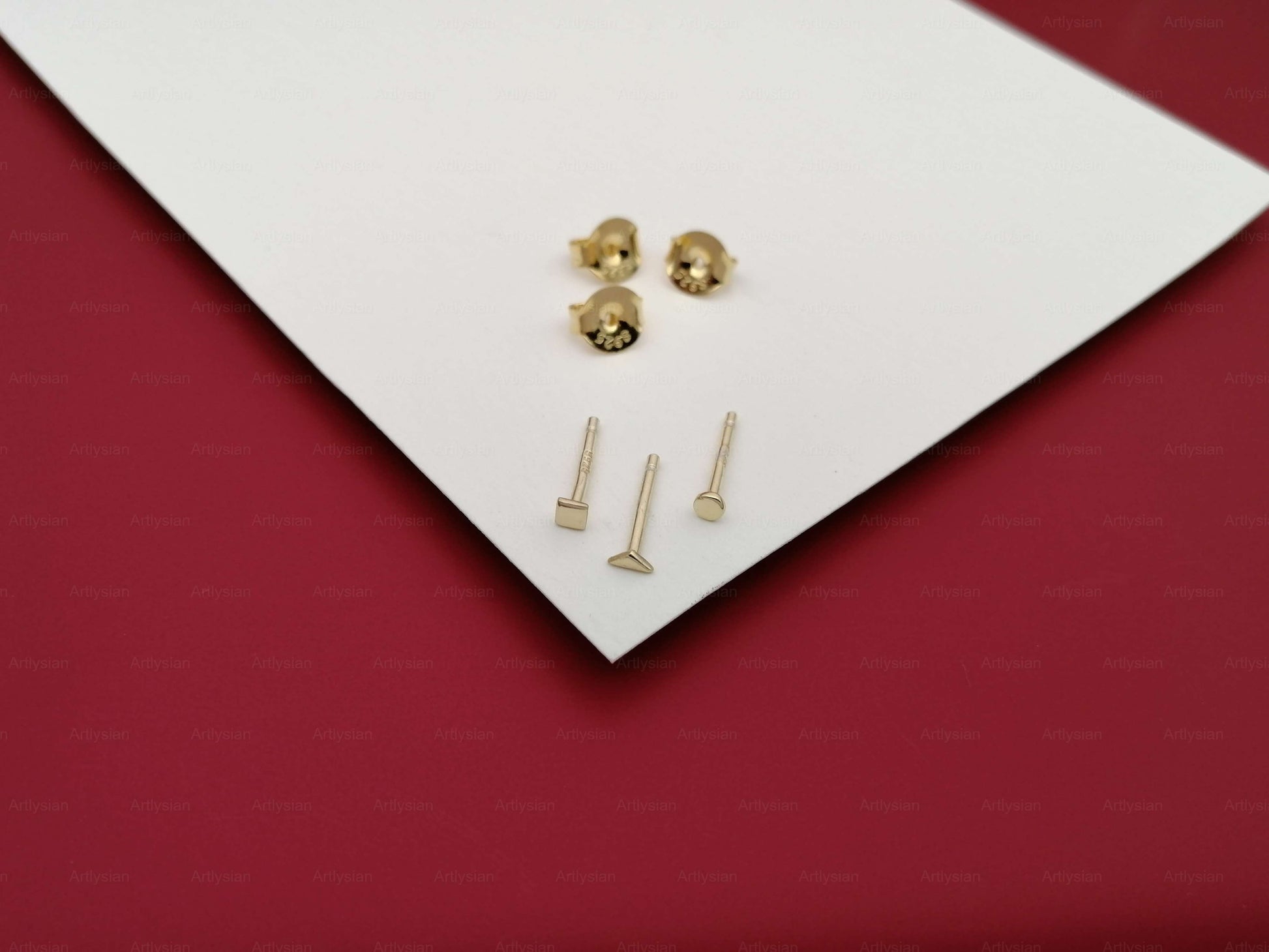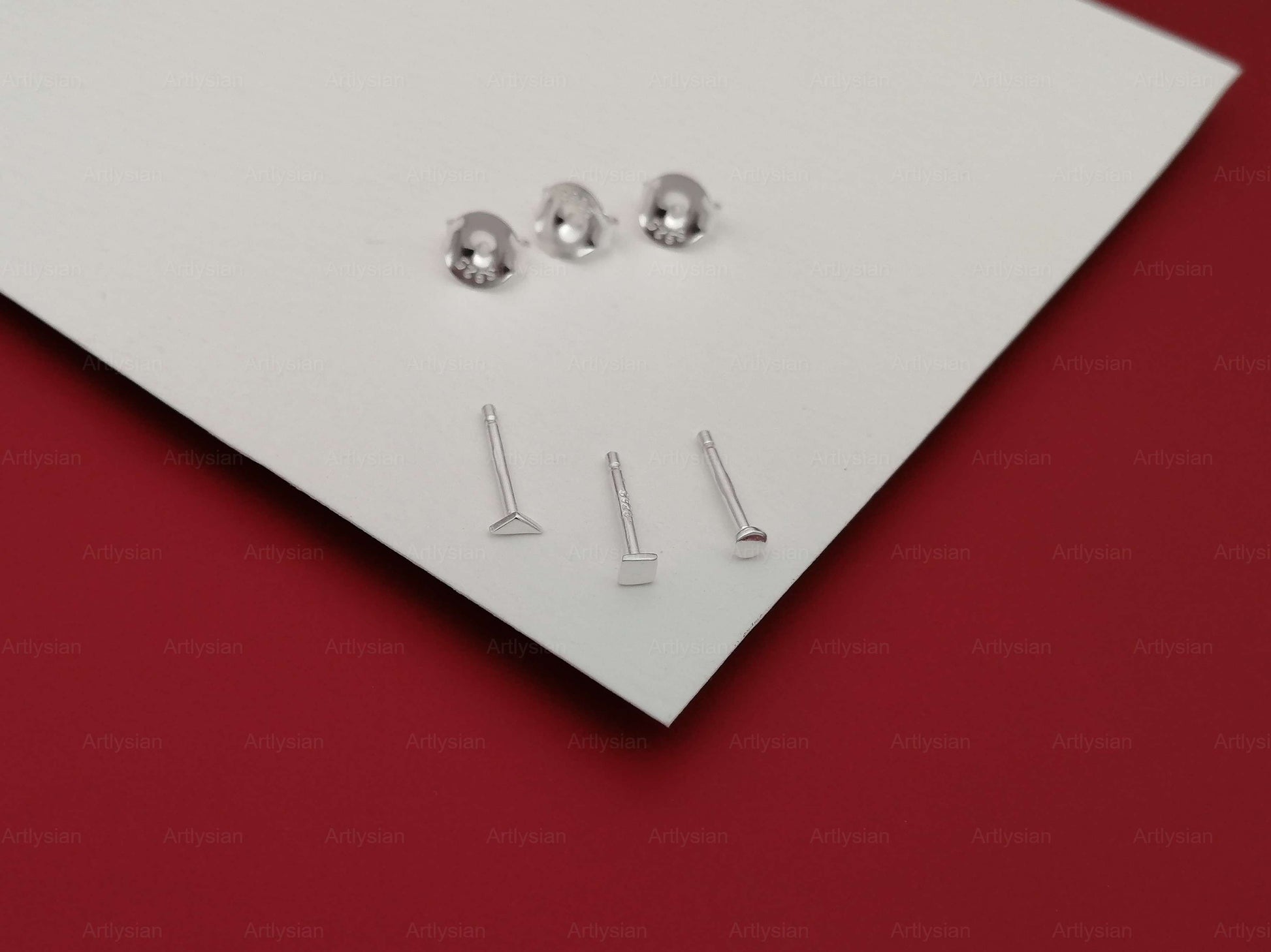 Vi introduserer vår "Tiny Stud Earrings"-kolleksjon, der diskré eleganse møter håndverksmessig håndverk. Hev hverdagsstilen din med vårt omhyggelig håndlagde sterling sølv sett med 3 øredobber og baksider, tilgjengelig i både klassisk sterling sølv og en strålende 18k gullbelagt finish.Disse miniatyrunderverkene er designet for den moderne minimalistiske, og utstråler tidløs sjarm og allsidighet. Du har valget mellom å anskaffe en enkelt øredobber for å pryde det ene øret eller et par av disse delikat utformede øredobber for å pryde begge ørene.