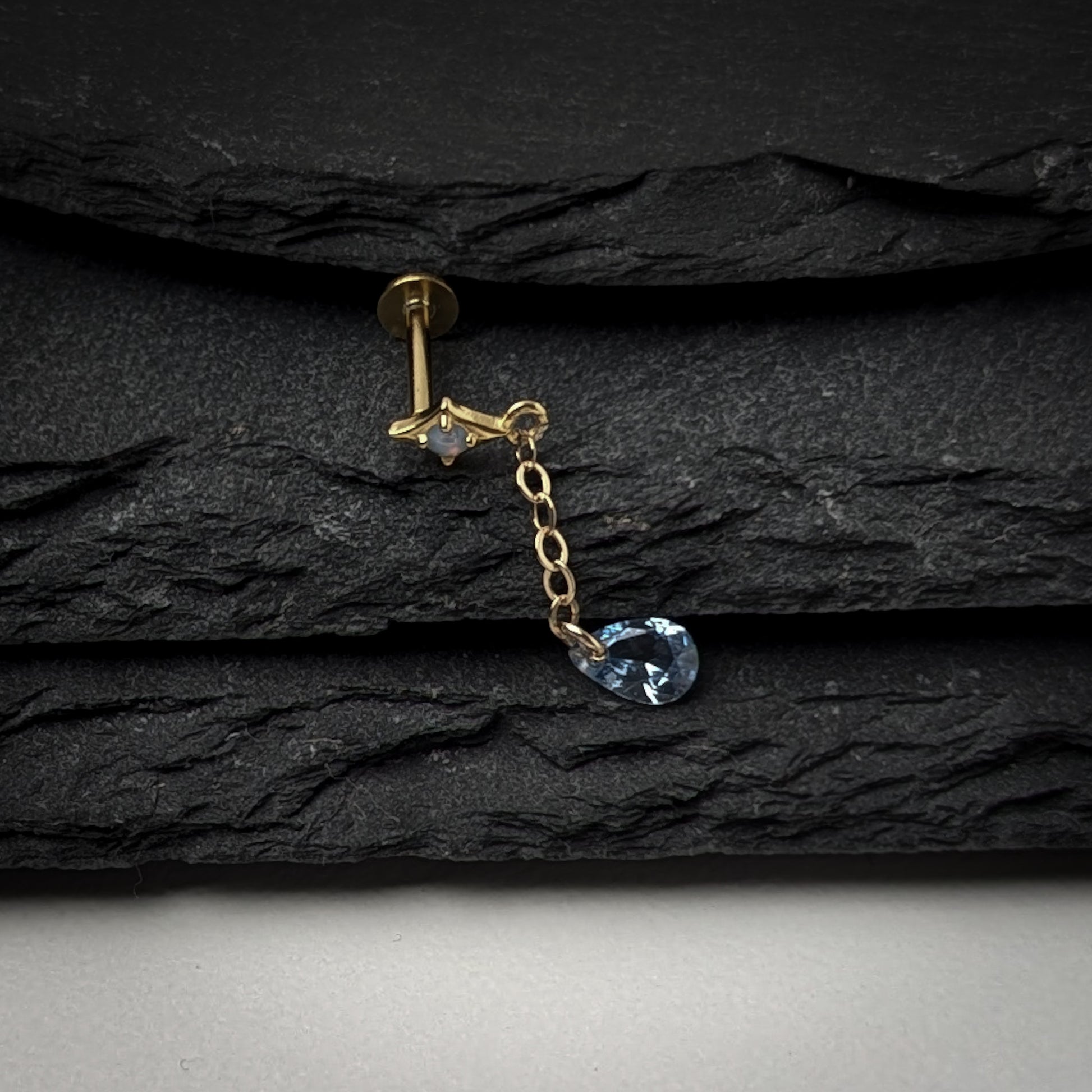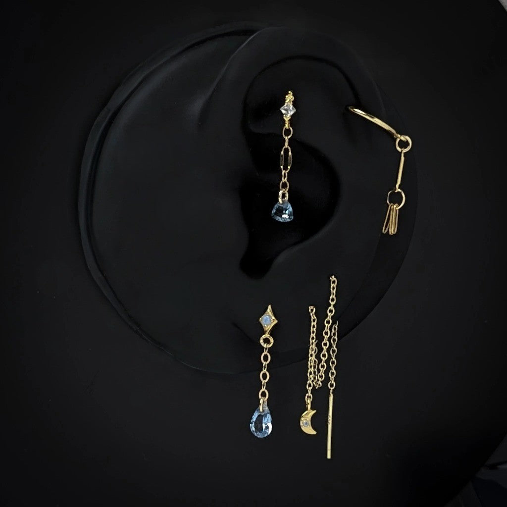 Øredobbsett (Ear Stack) – 4 Øredobber i Gull med Blå Stein & Opal
