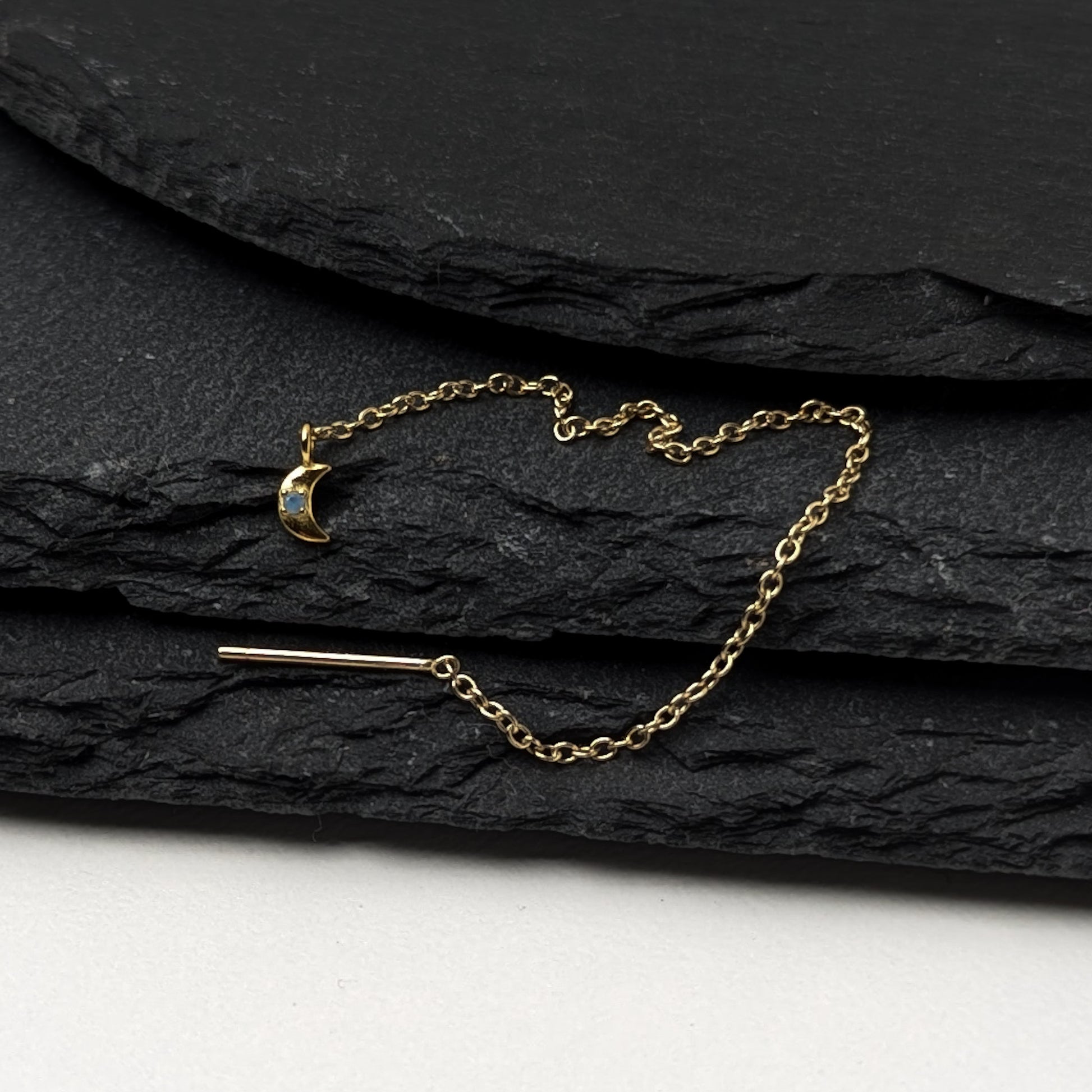 · Trådøredobb med kjede (9 cm) med liten måne og opal (5 x 2 mm)