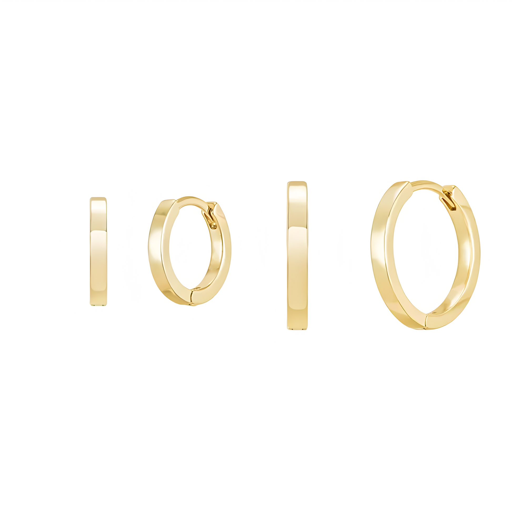 Våre klassiske, polerte huggie-hoops er det perfekte tilbehøret som kompletterer enhver stil og passer til enhver anledning. Disse tidløse øreringene er enkelt å style og legger til et snev av eleganse til ethvert antrekk. Enten du velger å bruke dem alene for et enkelt og sofistikert uttrykk, eller legge dem til din personlige ørestabel for ekstra glans, vil disse øreringene være et allsidig tillegg til din smykkesamling som aldri går av moten.